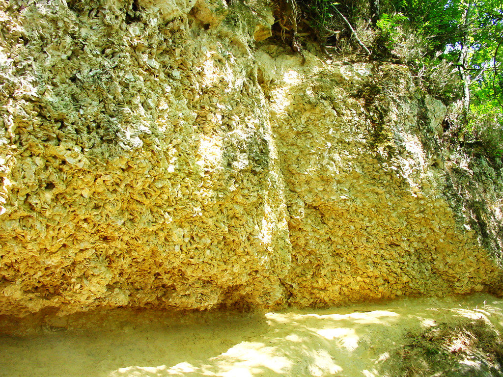 Une crique sous-marine constituait un habitat idéal qui a attiré de nombreuses huîtres. Tel du corail, elles se sont implantées les unes sur les autres formant une biocénose pour constituer une véritable falaise.
